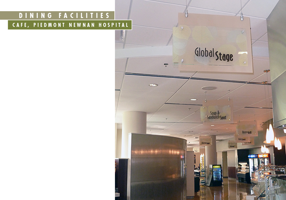WK has developed logos, signage and graphics for a number of different types of dining facilities. Projects include food and beverage outlets for hotels, corporate cafeterias, educational and medical facilities. Each project is approached with a distinctive design that is integrated into the architecture and interiors.