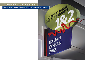 Our convention center experience is a great example of our project specific approach to signage design. The following projects had similar programming needs, yet very different architectural settings. These sign programs are designed to blend seamlessly with their architectural environments.