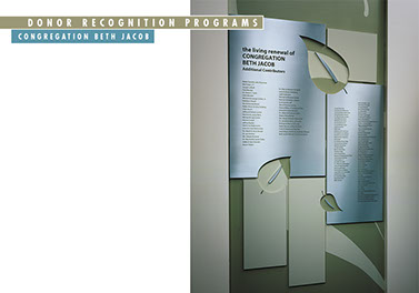 Whyte•Kerner has developed a variety of highly creative, well integrated recognition displays that help promote philanthropic initiatives. These public displays not only serve to honor contibutors, they also inspire generosity in others.