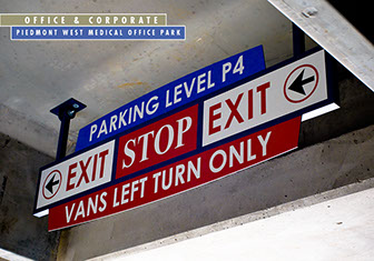 Effective office building and corporate facility signage should serve to establish the buildings identity, attract tenants and inform and direct visitors. Whyte•Kerner has experience with interior, exterior, and parking deck signage for corporate campuses, business parks, municipalities and private offices.