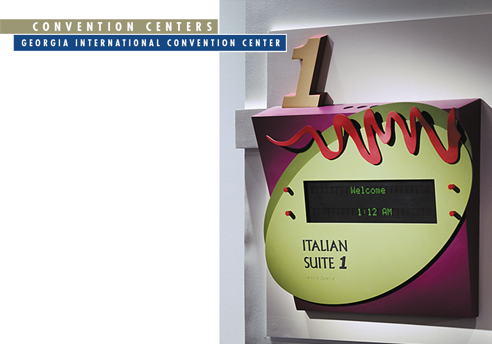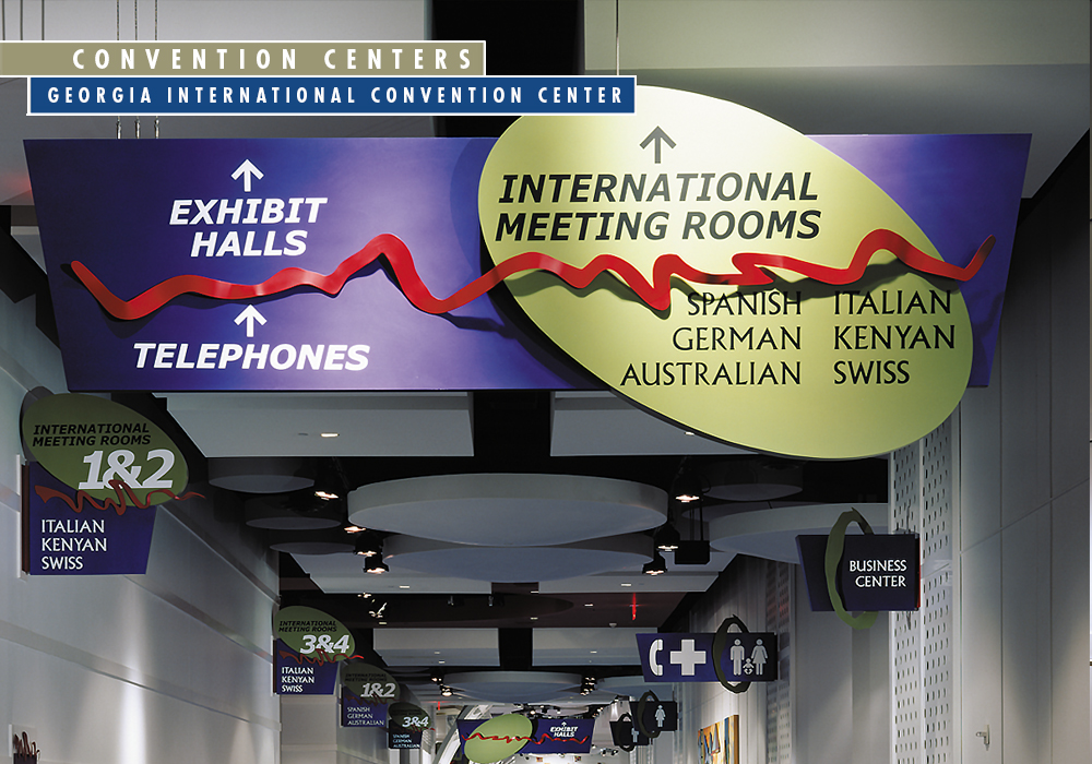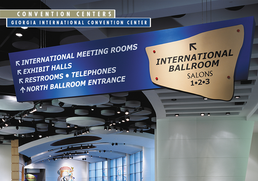 Our convention center experience is a great example of our project specific approach to signage design. The following projects had similar programming needs, yet very different architectural settings. These sign programs are designed to blend seamlessly with their architectural environments.