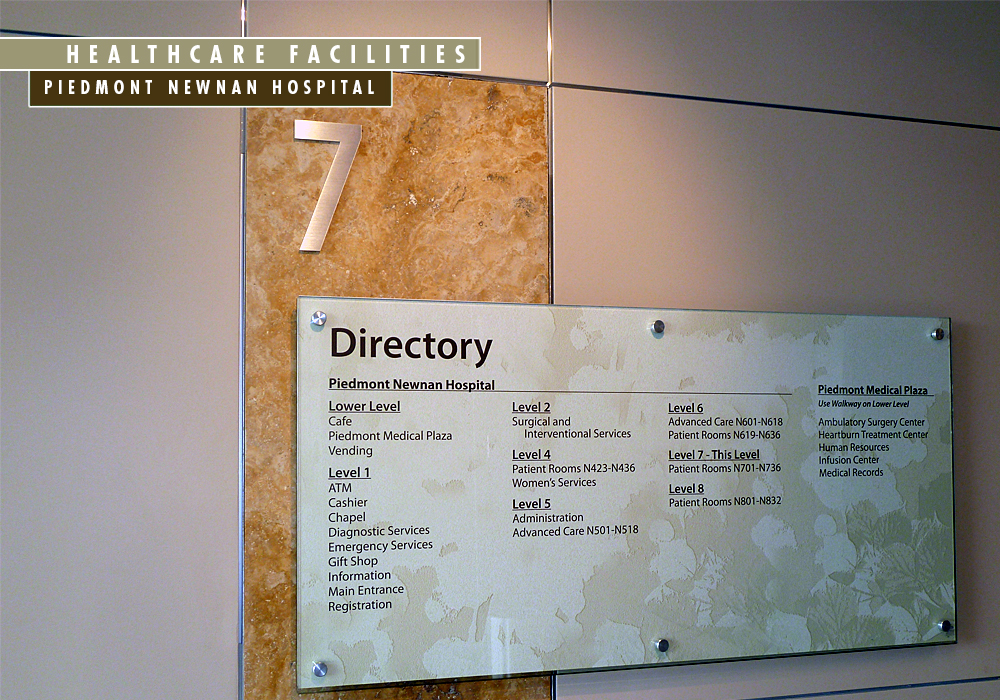 Today’s highly competitive healthcare market places a new emphasis on well designed wayfinding systems necessary for reducing patient and visitor anxiety. We specialize in highly functional wayfinding programs that complement the hospital’s design aesthetic and contribute to its healthcare professionalism.
